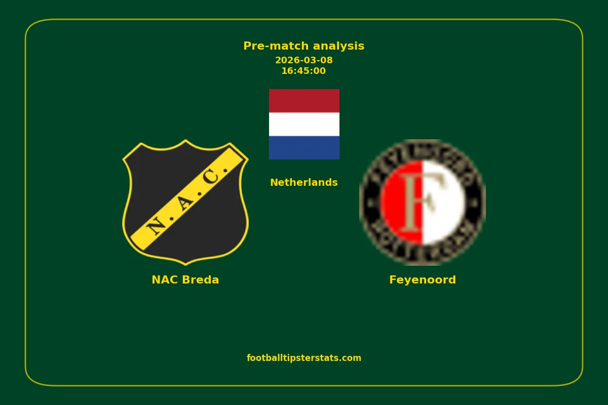 Analyzing the recent performance of NAC Breda and Feyenoord in Netherlands, we can derive insights that may inform future match predictions. By examining their individual game histories, head-to-head encounters, and overall trends, we can identify patterns that highlight strengths and weaknesses for both teams. This comprehensive review aims to provide a clearer understanding of their competitive dynamics and potential outcomes in upcoming fixtures.This pre-match analysis covers the upcoming fixture between NAC Breda and Feyenoord. Below you’ll find a detailed breakdown of both teams’ recent form, goal statistics, and head-to-head performance. These insights provide a clear picture of current momentum and can be valuable for match forecasting, tactical evaluation, or betting analysis. Please note that these suggestions are based on historical data and trends. While they provide valuable insights, actual match outcomes can be influenced by various unpredictable factors. Always consider multiple aspects before making any decisions based on these analyses.
