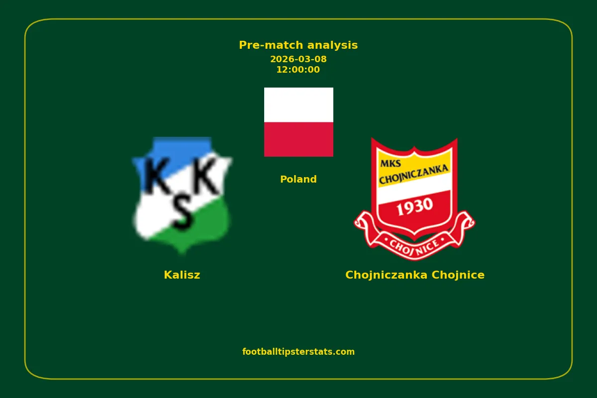 Analyzing the recent performance of Kalisz and Chojniczanka Chojnice in Poland, we can derive insights that may inform future match predictions. By examining their individual game histories, head-to-head encounters, and overall trends, we can identify patterns that highlight strengths and weaknesses for both teams. This comprehensive review aims to provide a clearer understanding of their competitive dynamics and potential outcomes in upcoming fixtures.This pre-match analysis covers the upcoming fixture between Kalisz and Chojniczanka Chojnice. Below you’ll find a detailed breakdown of both teams’ recent form, goal statistics, and head-to-head performance. These insights provide a clear picture of current momentum and can be valuable for match forecasting, tactical evaluation, or betting analysis. Please note that these suggestions are based on historical data and trends. While they provide valuable insights, actual match outcomes can be influenced by various unpredictable factors. Always consider multiple aspects before making any decisions based on these analyses.