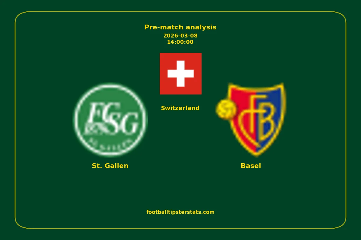 Analyzing the recent performance of St. Gallen and Basel in Switzerland, we can derive insights that may inform future match predictions. By examining their individual game histories, head-to-head encounters, and overall trends, we can identify patterns that highlight strengths and weaknesses for both teams. This comprehensive review aims to provide a clearer understanding of their competitive dynamics and potential outcomes in upcoming fixtures.This pre-match analysis covers the upcoming fixture between St. Gallen and Basel. Below you’ll find a detailed breakdown of both teams’ recent form, goal statistics, and head-to-head performance. These insights provide a clear picture of current momentum and can be valuable for match forecasting, tactical evaluation, or betting analysis. Please note that these suggestions are based on historical data and trends. While they provide valuable insights, actual match outcomes can be influenced by various unpredictable factors. Always consider multiple aspects before making any decisions based on these analyses.