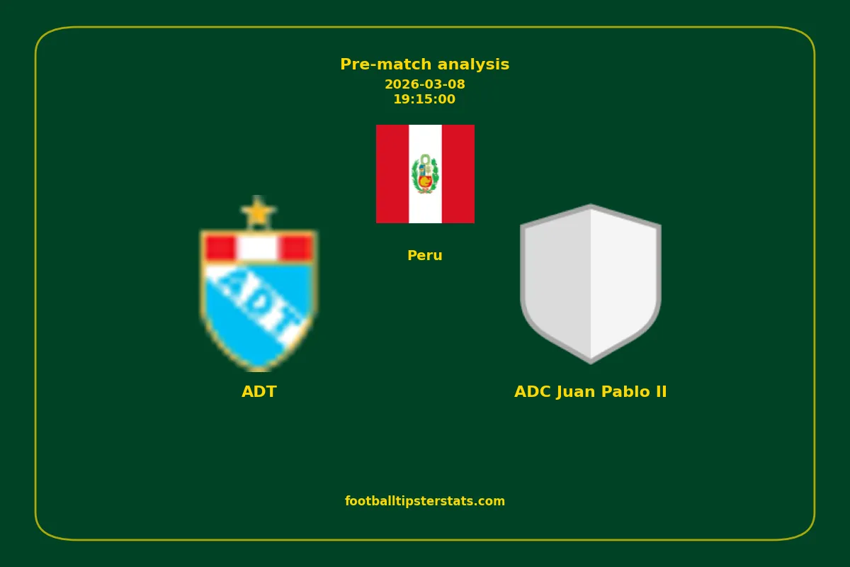Analyzing the recent performance of ADT and ADC Juan Pablo II in Peru, we can derive insights that may inform future match predictions. By examining their individual game histories, head-to-head encounters, and overall trends, we can identify patterns that highlight strengths and weaknesses for both teams. This comprehensive review aims to provide a clearer understanding of their competitive dynamics and potential outcomes in upcoming fixtures.This pre-match analysis covers the upcoming fixture between ADT and ADC Juan Pablo II. Below you’ll find a detailed breakdown of both teams’ recent form, goal statistics, and head-to-head performance. These insights provide a clear picture of current momentum and can be valuable for match forecasting, tactical evaluation, or betting analysis. Please note that these suggestions are based on historical data and trends. While they provide valuable insights, actual match outcomes can be influenced by various unpredictable factors. Always consider multiple aspects before making any decisions based on these analyses.