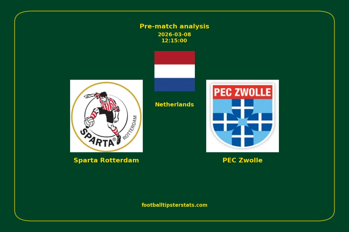 Analyzing the recent performance of Sparta Rotterdam and PEC Zwolle in Netherlands, we can derive insights that may inform future match predictions. By examining their individual game histories, head-to-head encounters, and overall trends, we can identify patterns that highlight strengths and weaknesses for both teams. This comprehensive review aims to provide a clearer understanding of their competitive dynamics and potential outcomes in upcoming fixtures.This pre-match analysis covers the upcoming fixture between Sparta Rotterdam and PEC Zwolle. Below you’ll find a detailed breakdown of both teams’ recent form, goal statistics, and head-to-head performance. These insights provide a clear picture of current momentum and can be valuable for match forecasting, tactical evaluation, or betting analysis. Please note that these suggestions are based on historical data and trends. While they provide valuable insights, actual match outcomes can be influenced by various unpredictable factors. Always consider multiple aspects before making any decisions based on these analyses.