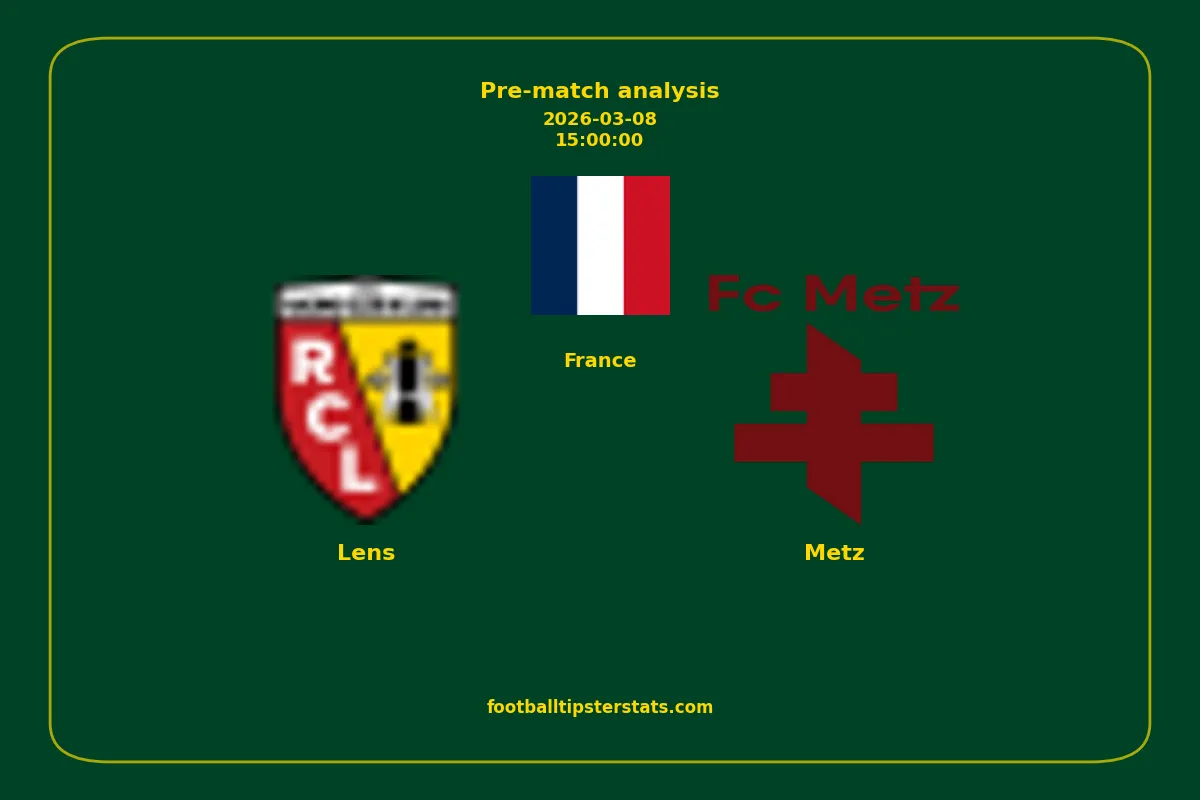 Analyzing the recent performance of Lens and Metz in France, we can derive insights that may inform future match predictions. By examining their individual game histories, head-to-head encounters, and overall trends, we can identify patterns that highlight strengths and weaknesses for both teams. This comprehensive review aims to provide a clearer understanding of their competitive dynamics and potential outcomes in upcoming fixtures.This pre-match analysis covers the upcoming fixture between Lens and Metz. Below you’ll find a detailed breakdown of both teams’ recent form, goal statistics, and head-to-head performance. These insights provide a clear picture of current momentum and can be valuable for match forecasting, tactical evaluation, or betting analysis. Please note that these suggestions are based on historical data and trends. While they provide valuable insights, actual match outcomes can be influenced by various unpredictable factors. Always consider multiple aspects before making any decisions based on these analyses.