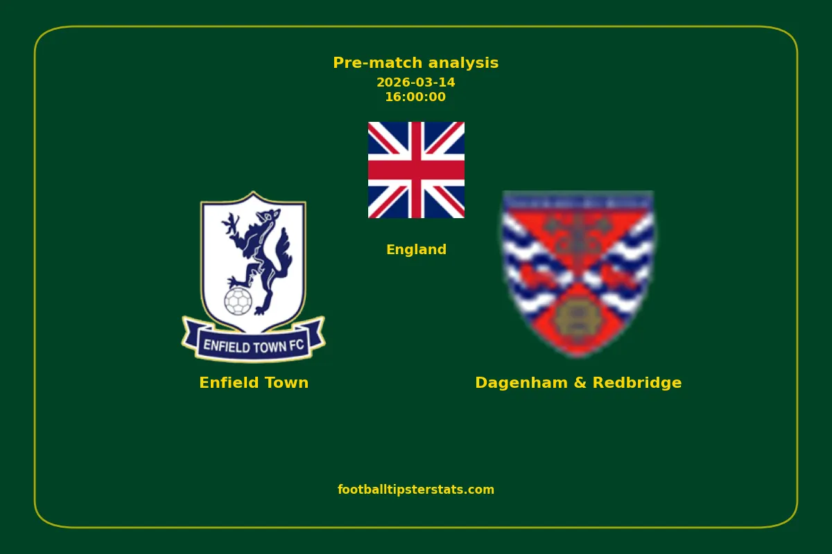 Analyzing the recent performance of Enfield Town and Dagenham & Redbridge in England, we can derive insights that may inform future match predictions. By examining their individual game histories, head-to-head encounters, and overall trends, we can identify patterns that highlight strengths and weaknesses for both teams. This comprehensive review aims to provide a clearer understanding of their competitive dynamics and potential outcomes in upcoming fixtures.This pre-match analysis covers the upcoming fixture between Enfield Town and Dagenham & Redbridge. Below you’ll find a detailed breakdown of both teams’ recent form, goal statistics, and head-to-head performance. These insights provide a clear picture of current momentum and can be valuable for match forecasting, tactical evaluation, or betting analysis. Please note that these suggestions are based on historical data and trends. While they provide valuable insights, actual match outcomes can be influenced by various unpredictable factors. Always consider multiple aspects before making any decisions based on these analyses.