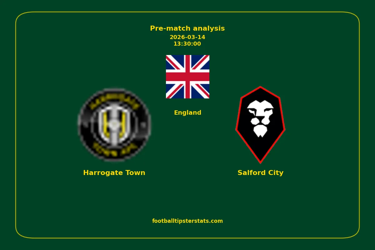 Analyzing the recent performance of Harrogate Town and Salford City in England, we can derive insights that may inform future match predictions. By examining their individual game histories, head-to-head encounters, and overall trends, we can identify patterns that highlight strengths and weaknesses for both teams. This comprehensive review aims to provide a clearer understanding of their competitive dynamics and potential outcomes in upcoming fixtures.This pre-match analysis covers the upcoming fixture between Harrogate Town and Salford City. Below you’ll find a detailed breakdown of both teams’ recent form, goal statistics, and head-to-head performance. These insights provide a clear picture of current momentum and can be valuable for match forecasting, tactical evaluation, or betting analysis. Please note that these suggestions are based on historical data and trends. While they provide valuable insights, actual match outcomes can be influenced by various unpredictable factors. Always consider multiple aspects before making any decisions based on these analyses.