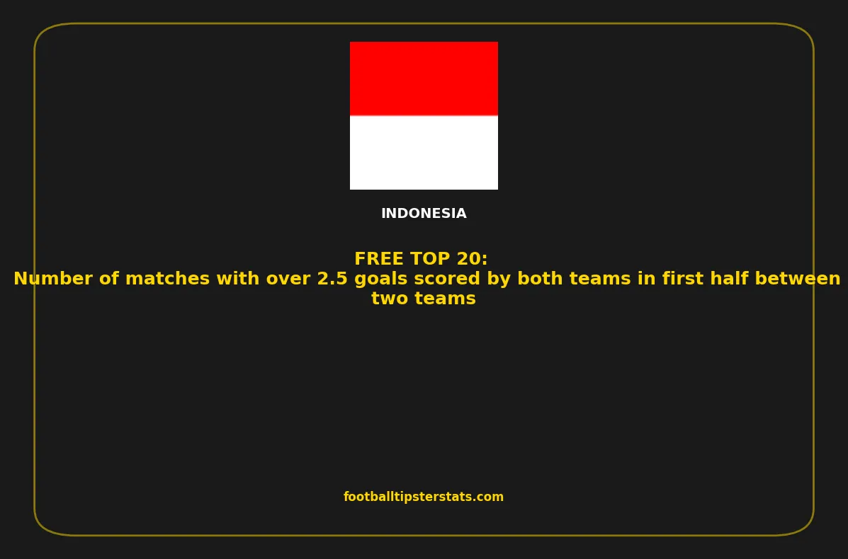 Here is a detailed overview of the teams with the highest number of matches with over 2.5 goals scored by both teams in first half between two teams in Indonesia. This list highlights clubs that consistently produce high-scoring games, based on recent statistical performance. Whether you're analyzing trends, preparing betting strategies, or simply exploring offensive team profiles, these numbers offer a clear insight into which teams generate the most goal-rich matches.
