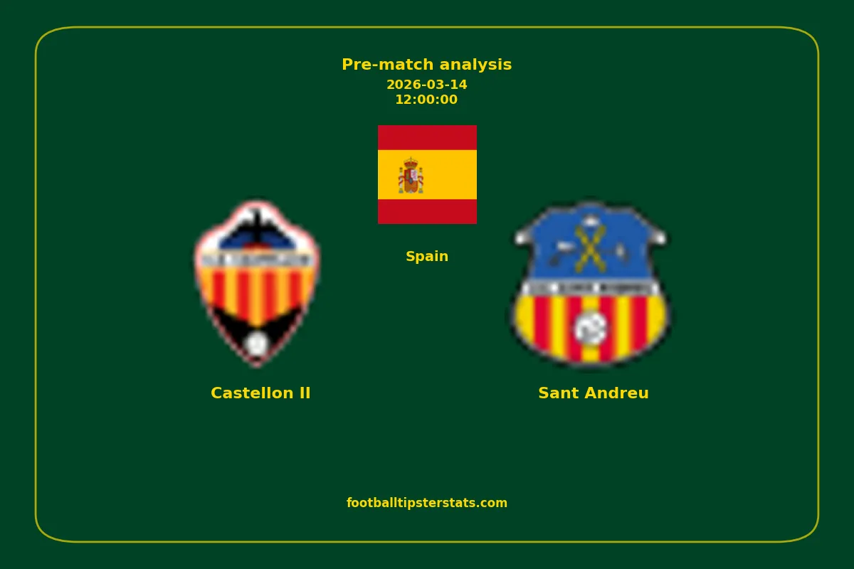 Analyzing the recent performance of Castellon II and Sant Andreu in Spain, we can derive insights that may inform future match predictions. By examining their individual game histories, head-to-head encounters, and overall trends, we can identify patterns that highlight strengths and weaknesses for both teams. This comprehensive review aims to provide a clearer understanding of their competitive dynamics and potential outcomes in upcoming fixtures.This pre-match analysis covers the upcoming fixture between Castellon II and Sant Andreu. Below you’ll find a detailed breakdown of both teams’ recent form, goal statistics, and head-to-head performance. These insights provide a clear picture of current momentum and can be valuable for match forecasting, tactical evaluation, or betting analysis. Please note that these suggestions are based on historical data and trends. While they provide valuable insights, actual match outcomes can be influenced by various unpredictable factors. Always consider multiple aspects before making any decisions based on these analyses.