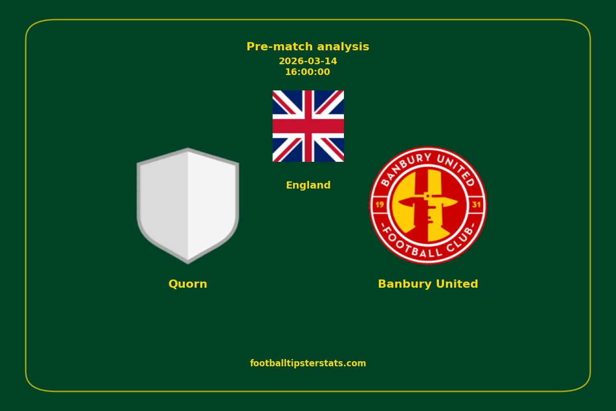 Analyzing the recent performance of Quorn and Banbury United in England, we can derive insights that may inform future match predictions. By examining their individual game histories, head-to-head encounters, and overall trends, we can identify patterns that highlight strengths and weaknesses for both teams. This comprehensive review aims to provide a clearer understanding of their competitive dynamics and potential outcomes in upcoming fixtures.This pre-match analysis covers the upcoming fixture between Quorn and Banbury United. Below you’ll find a detailed breakdown of both teams’ recent form, goal statistics, and head-to-head performance. These insights provide a clear picture of current momentum and can be valuable for match forecasting, tactical evaluation, or betting analysis. Please note that these suggestions are based on historical data and trends. While they provide valuable insights, actual match outcomes can be influenced by various unpredictable factors. Always consider multiple aspects before making any decisions based on these analyses.