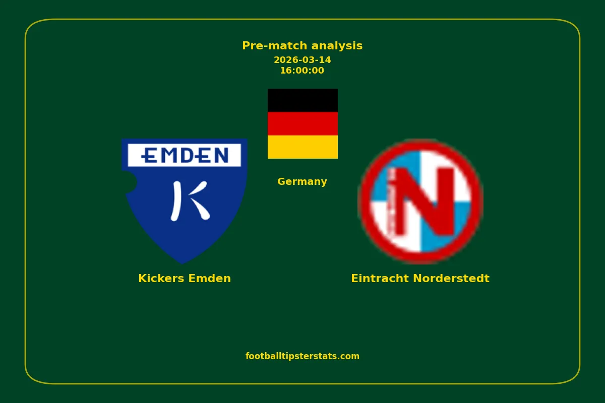 Analyzing the recent performance of Kickers Emden and Eintracht Norderstedt in Germany, we can derive insights that may inform future match predictions. By examining their individual game histories, head-to-head encounters, and overall trends, we can identify patterns that highlight strengths and weaknesses for both teams. This comprehensive review aims to provide a clearer understanding of their competitive dynamics and potential outcomes in upcoming fixtures.This pre-match analysis covers the upcoming fixture between Kickers Emden and Eintracht Norderstedt. Below you’ll find a detailed breakdown of both teams’ recent form, goal statistics, and head-to-head performance. These insights provide a clear picture of current momentum and can be valuable for match forecasting, tactical evaluation, or betting analysis. Please note that these suggestions are based on historical data and trends. While they provide valuable insights, actual match outcomes can be influenced by various unpredictable factors. Always consider multiple aspects before making any decisions based on these analyses.