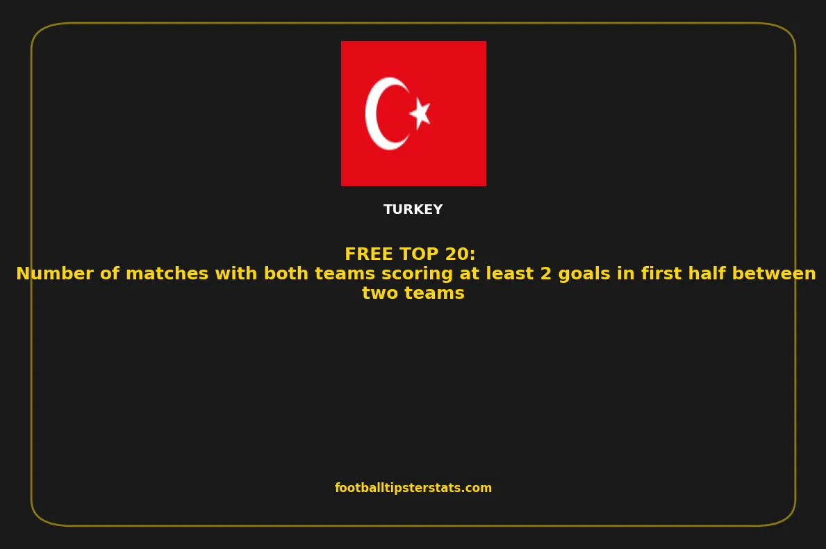 Here is a detailed overview of the teams with the highest number of matches with both teams scoring at least 2 goals in first half between two teams in Turkey. This list highlights clubs that consistently produce high-scoring games, based on recent statistical performance. Whether you're analyzing trends, preparing betting strategies, or simply exploring offensive team profiles, these numbers offer a clear insight into which teams generate the most goal-rich matches.