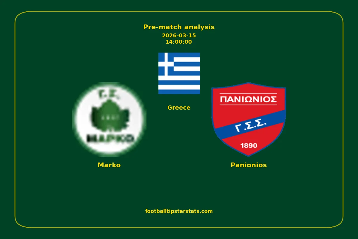 Analyzing the recent performance of Marko and Panionios in Greece, we can derive insights that may inform future match predictions. By examining their individual game histories, head-to-head encounters, and overall trends, we can identify patterns that highlight strengths and weaknesses for both teams. This comprehensive review aims to provide a clearer understanding of their competitive dynamics and potential outcomes in upcoming fixtures.This pre-match analysis covers the upcoming fixture between Marko and Panionios. Below you’ll find a detailed breakdown of both teams’ recent form, goal statistics, and head-to-head performance. These insights provide a clear picture of current momentum and can be valuable for match forecasting, tactical evaluation, or betting analysis. Please note that these suggestions are based on historical data and trends. While they provide valuable insights, actual match outcomes can be influenced by various unpredictable factors. Always consider multiple aspects before making any decisions based on these analyses.