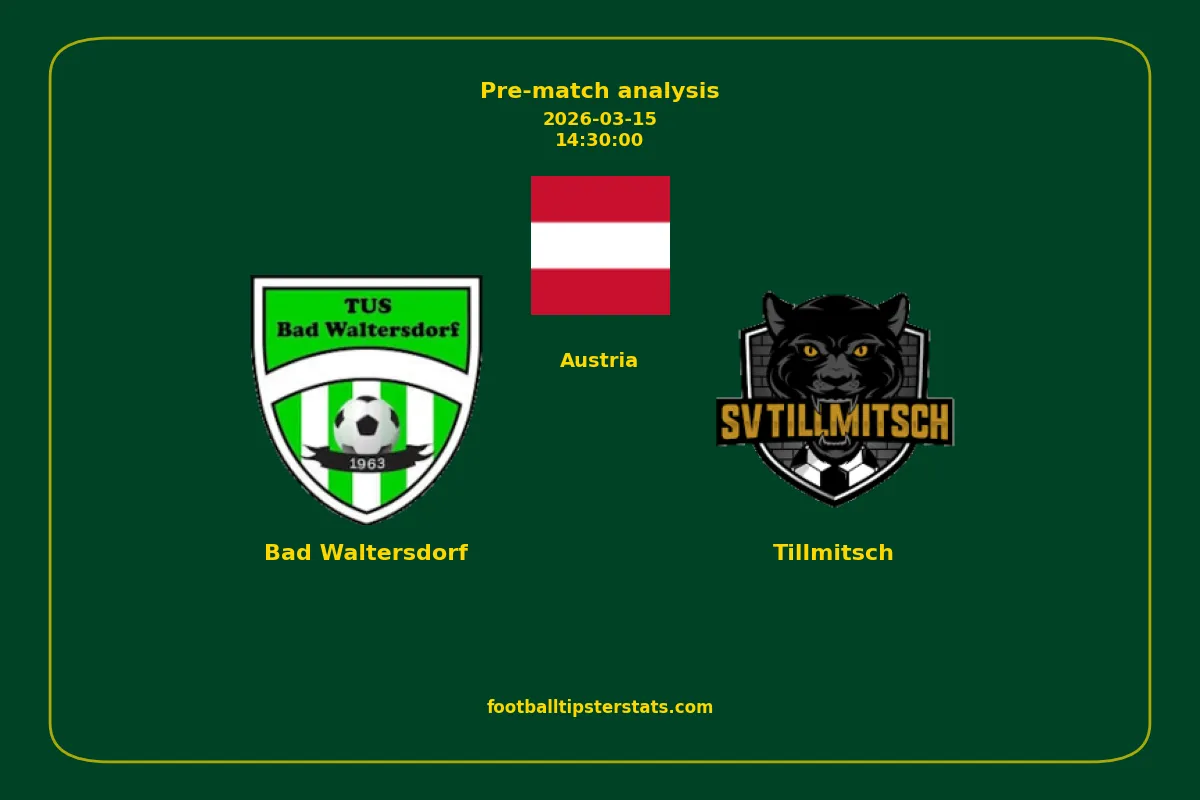 Analyzing the recent performance of Bad Waltersdorf and Tillmitsch in Austria, we can derive insights that may inform future match predictions. By examining their individual game histories, head-to-head encounters, and overall trends, we can identify patterns that highlight strengths and weaknesses for both teams. This comprehensive review aims to provide a clearer understanding of their competitive dynamics and potential outcomes in upcoming fixtures.This pre-match analysis covers the upcoming fixture between Bad Waltersdorf and Tillmitsch. Below you’ll find a detailed breakdown of both teams’ recent form, goal statistics, and head-to-head performance. These insights provide a clear picture of current momentum and can be valuable for match forecasting, tactical evaluation, or betting analysis. Please note that these suggestions are based on historical data and trends. While they provide valuable insights, actual match outcomes can be influenced by various unpredictable factors. Always consider multiple aspects before making any decisions based on these analyses.