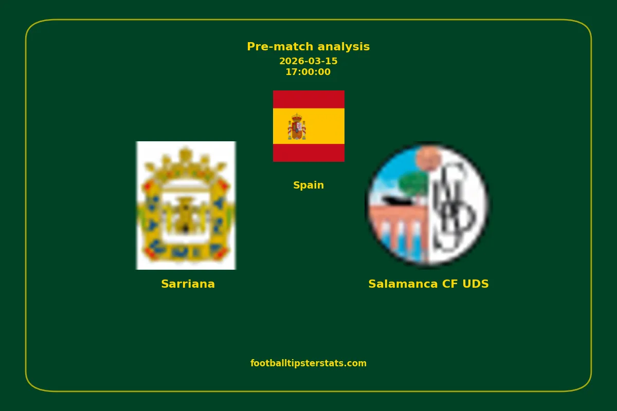Analyzing the recent performance of Sarriana and Salamanca CF UDS in Spain, we can derive insights that may inform future match predictions. By examining their individual game histories, head-to-head encounters, and overall trends, we can identify patterns that highlight strengths and weaknesses for both teams. This comprehensive review aims to provide a clearer understanding of their competitive dynamics and potential outcomes in upcoming fixtures.This pre-match analysis covers the upcoming fixture between Sarriana and Salamanca CF UDS. Below you’ll find a detailed breakdown of both teams’ recent form, goal statistics, and head-to-head performance. These insights provide a clear picture of current momentum and can be valuable for match forecasting, tactical evaluation, or betting analysis. Please note that these suggestions are based on historical data and trends. While they provide valuable insights, actual match outcomes can be influenced by various unpredictable factors. Always consider multiple aspects before making any decisions based on these analyses.