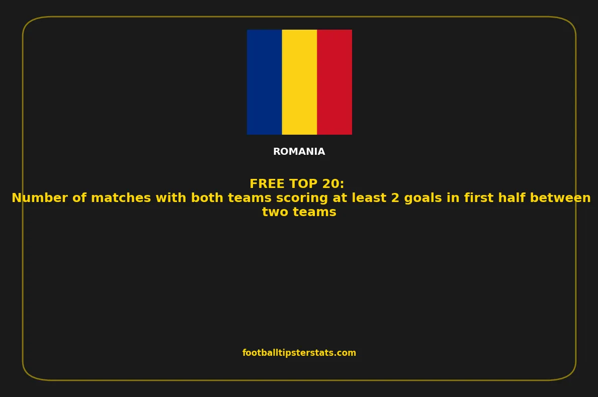 Here is a detailed overview of the teams with the highest number of matches with both teams scoring at least 2 goals in first half between two teams in Romania. This list highlights clubs that consistently produce high-scoring games, based on recent statistical performance. Whether you're analyzing trends, preparing betting strategies, or simply exploring offensive team profiles, these numbers offer a clear insight into which teams generate the most goal-rich matches.