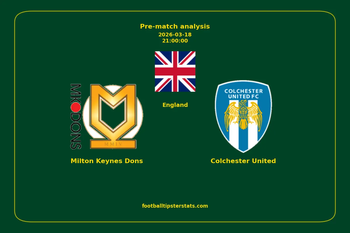 Analyzing the recent performance of Milton Keynes Dons and Colchester United in England, we can derive insights that may inform future match predictions. By examining their individual game histories, head-to-head encounters, and overall trends, we can identify patterns that highlight strengths and weaknesses for both teams. This comprehensive review aims to provide a clearer understanding of their competitive dynamics and potential outcomes in upcoming fixtures.This pre-match analysis covers the upcoming fixture between Milton Keynes Dons and Colchester United. Below you’ll find a detailed breakdown of both teams’ recent form, goal statistics, and head-to-head performance. These insights provide a clear picture of current momentum and can be valuable for match forecasting, tactical evaluation, or betting analysis. Please note that these suggestions are based on historical data and trends. While they provide valuable insights, actual match outcomes can be influenced by various unpredictable factors. Always consider multiple aspects before making any decisions based on these analyses.