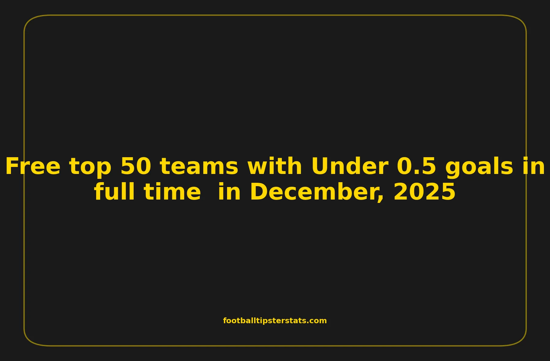 Based on the analysis of hundreds of matches played in December 2025, we have identified the 50 teams that are statistically the most reliable for Under 0.5 goals. This overview provides a clear, precise, and data-driven insight into the most stable efficiency trends across the world.