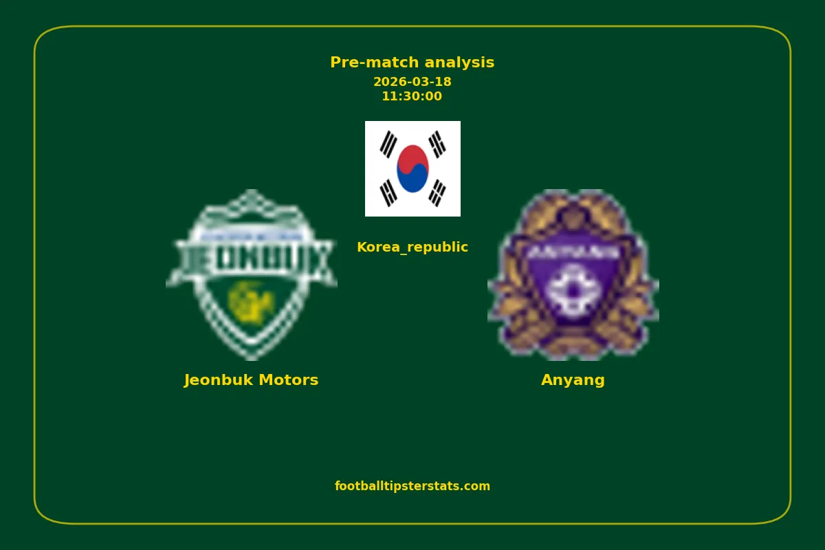 Analyzing the recent performance of Jeonbuk Motors and Anyang in Korea_republic, we can derive insights that may inform future match predictions. By examining their individual game histories, head-to-head encounters, and overall trends, we can identify patterns that highlight strengths and weaknesses for both teams. This comprehensive review aims to provide a clearer understanding of their competitive dynamics and potential outcomes in upcoming fixtures.This pre-match analysis covers the upcoming fixture between Jeonbuk Motors and Anyang. Below you’ll find a detailed breakdown of both teams’ recent form, goal statistics, and head-to-head performance. These insights provide a clear picture of current momentum and can be valuable for match forecasting, tactical evaluation, or betting analysis. Please note that these suggestions are based on historical data and trends. While they provide valuable insights, actual match outcomes can be influenced by various unpredictable factors. Always consider multiple aspects before making any decisions based on these analyses.