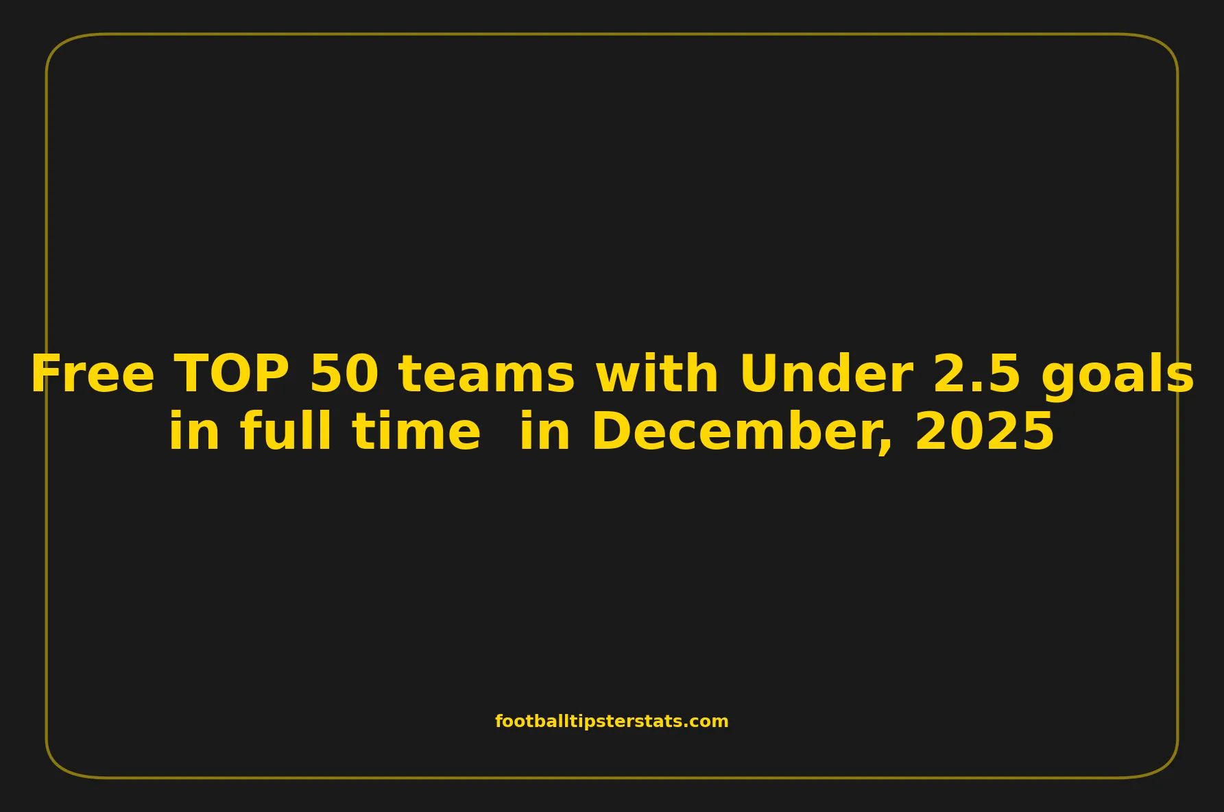 Based on the analysis of hundreds of matches played in December 2025, we have identified the 50 teams that are statistically the most reliable for Under 2.5 goals. This overview provides a clear, precise, and data-driven insight into the most stable efficiency trends across the world.