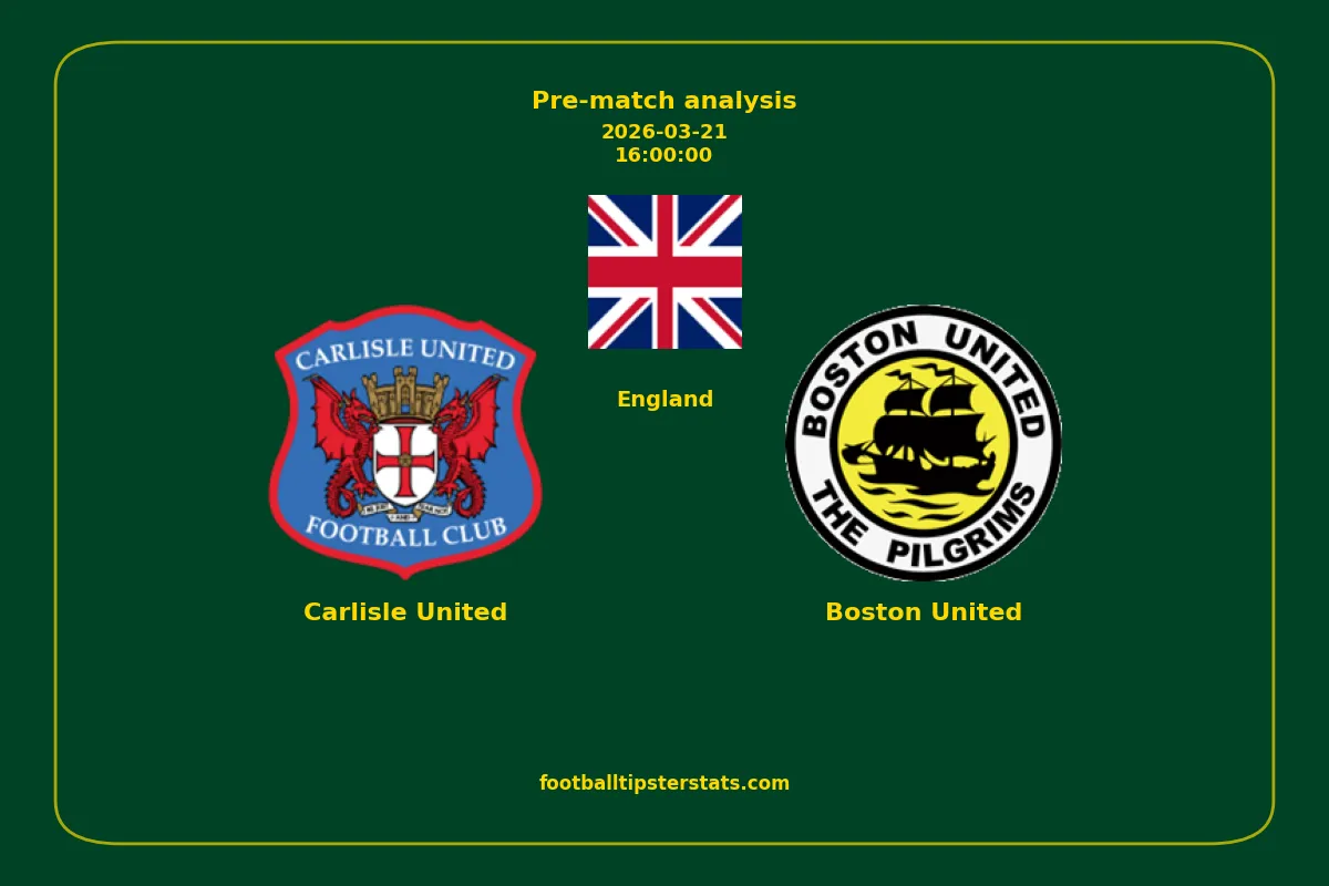 Analyzing the recent performance of Carlisle United and Boston United in England, we can derive insights that may inform future match predictions. By examining their individual game histories, head-to-head encounters, and overall trends, we can identify patterns that highlight strengths and weaknesses for both teams. This comprehensive review aims to provide a clearer understanding of their competitive dynamics and potential outcomes in upcoming fixtures.This pre-match analysis covers the upcoming fixture between Carlisle United and Boston United. Below you’ll find a detailed breakdown of both teams’ recent form, goal statistics, and head-to-head performance. These insights provide a clear picture of current momentum and can be valuable for match forecasting, tactical evaluation, or betting analysis. Please note that these suggestions are based on historical data and trends. While they provide valuable insights, actual match outcomes can be influenced by various unpredictable factors. Always consider multiple aspects before making any decisions based on these analyses.
