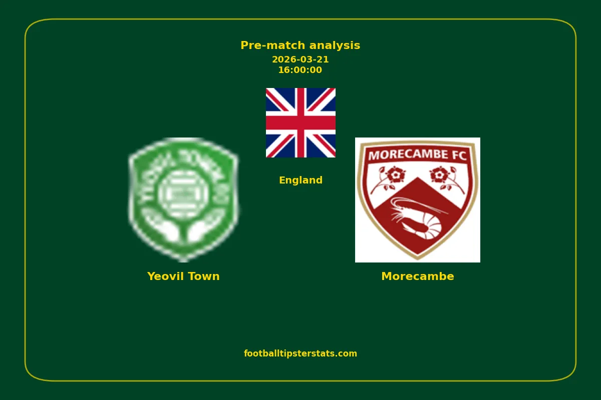 Analyzing the recent performance of Yeovil Town and Morecambe in England, we can derive insights that may inform future match predictions. By examining their individual game histories, head-to-head encounters, and overall trends, we can identify patterns that highlight strengths and weaknesses for both teams. This comprehensive review aims to provide a clearer understanding of their competitive dynamics and potential outcomes in upcoming fixtures.This pre-match analysis covers the upcoming fixture between Yeovil Town and Morecambe. Below you’ll find a detailed breakdown of both teams’ recent form, goal statistics, and head-to-head performance. These insights provide a clear picture of current momentum and can be valuable for match forecasting, tactical evaluation, or betting analysis. Please note that these suggestions are based on historical data and trends. While they provide valuable insights, actual match outcomes can be influenced by various unpredictable factors. Always consider multiple aspects before making any decisions based on these analyses.