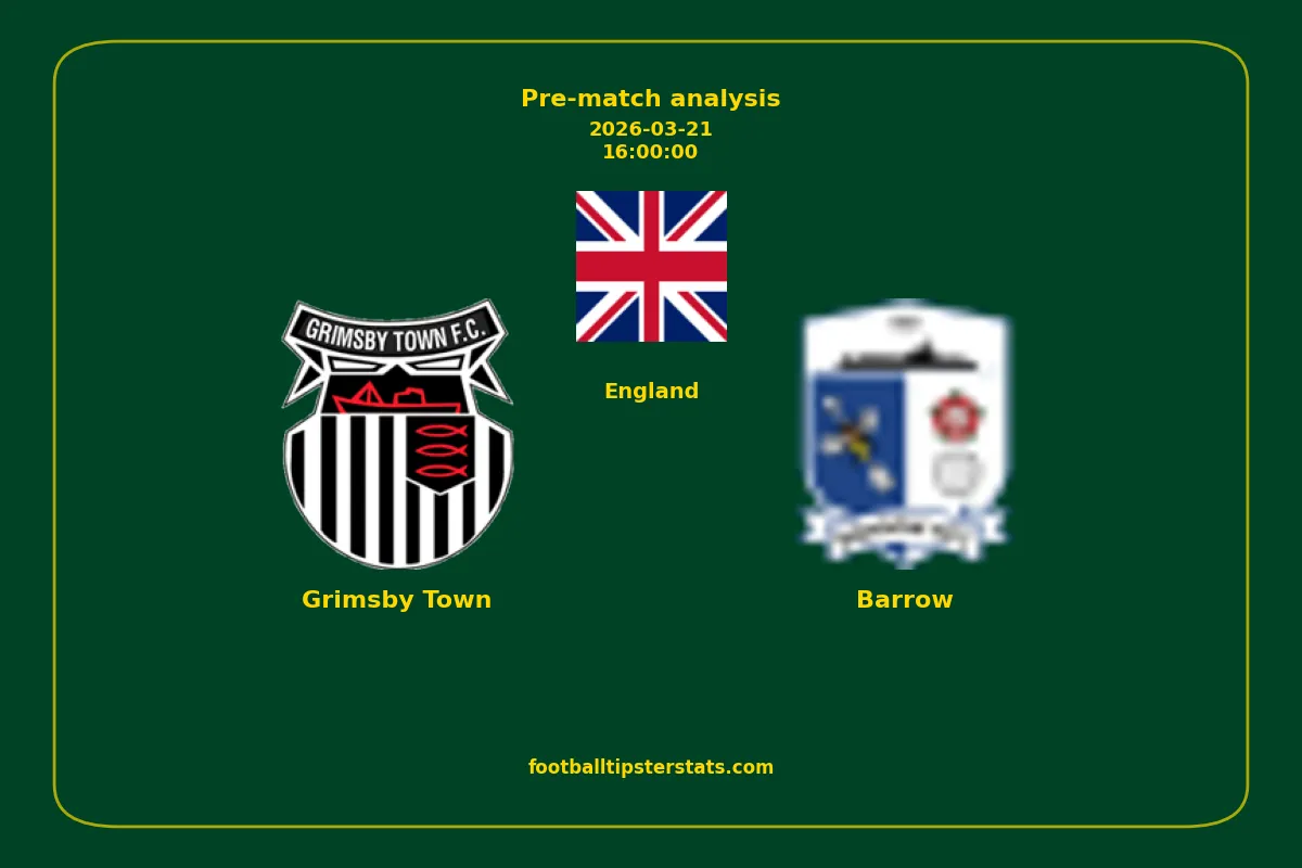 Analyzing the recent performance of Grimsby Town and Barrow in England, we can derive insights that may inform future match predictions. By examining their individual game histories, head-to-head encounters, and overall trends, we can identify patterns that highlight strengths and weaknesses for both teams. This comprehensive review aims to provide a clearer understanding of their competitive dynamics and potential outcomes in upcoming fixtures.This pre-match analysis covers the upcoming fixture between Grimsby Town and Barrow. Below you’ll find a detailed breakdown of both teams’ recent form, goal statistics, and head-to-head performance. These insights provide a clear picture of current momentum and can be valuable for match forecasting, tactical evaluation, or betting analysis. Please note that these suggestions are based on historical data and trends. While they provide valuable insights, actual match outcomes can be influenced by various unpredictable factors. Always consider multiple aspects before making any decisions based on these analyses.