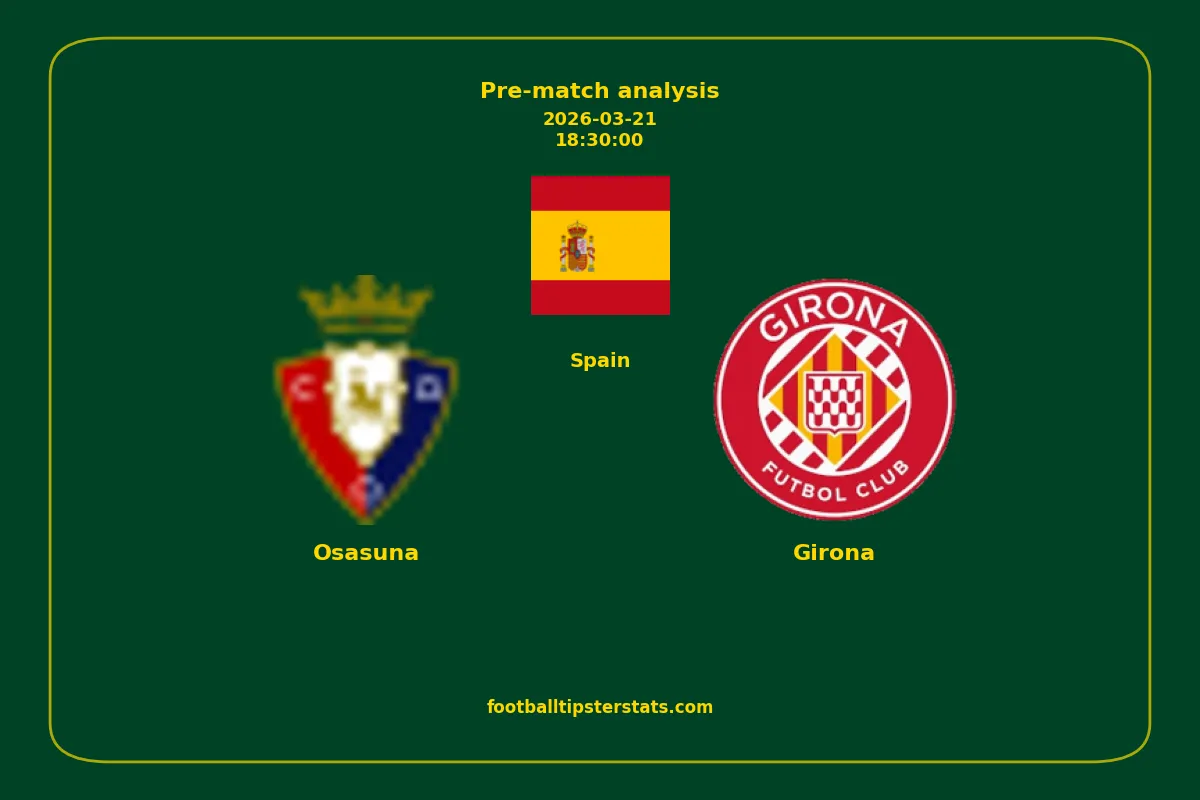 Analyzing the recent performance of Osasuna and Girona in Spain, we can derive insights that may inform future match predictions. By examining their individual game histories, head-to-head encounters, and overall trends, we can identify patterns that highlight strengths and weaknesses for both teams. This comprehensive review aims to provide a clearer understanding of their competitive dynamics and potential outcomes in upcoming fixtures.This pre-match analysis covers the upcoming fixture between Osasuna and Girona. Below you’ll find a detailed breakdown of both teams’ recent form, goal statistics, and head-to-head performance. These insights provide a clear picture of current momentum and can be valuable for match forecasting, tactical evaluation, or betting analysis. Please note that these suggestions are based on historical data and trends. While they provide valuable insights, actual match outcomes can be influenced by various unpredictable factors. Always consider multiple aspects before making any decisions based on these analyses.