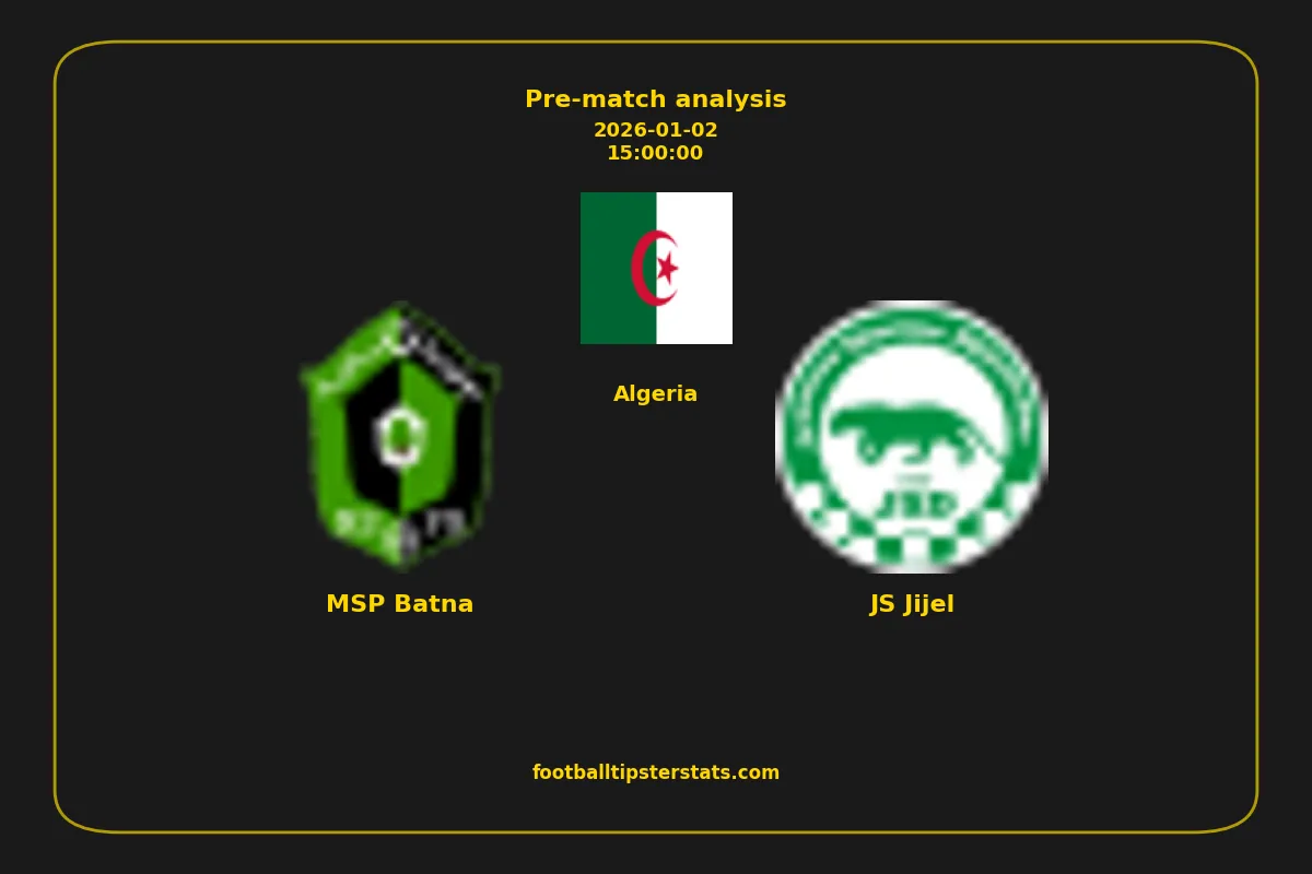 Analyzing the recent performance of MSP Batna and JS Jijel in Algeria, we can derive insights that may inform future match predictions. By examining their individual game histories, head-to-head encounters, and overall trends, we can identify patterns that highlight strengths and weaknesses for both teams. This comprehensive review aims to provide a clearer understanding of their competitive dynamics and potential outcomes in upcoming fixtures.This pre-match analysis covers the upcoming fixture between MSP Batna and JS Jijel. Below you’ll find a detailed breakdown of both teams’ recent form, goal statistics, and head-to-head performance. These insights provide a clear picture of current momentum and can be valuable for match forecasting, tactical evaluation, or betting analysis. Please note that these suggestions are based on historical data and trends. While they provide valuable insights, actual match outcomes can be influenced by various unpredictable factors. Always consider multiple aspects before making any decisions based on these analyses.