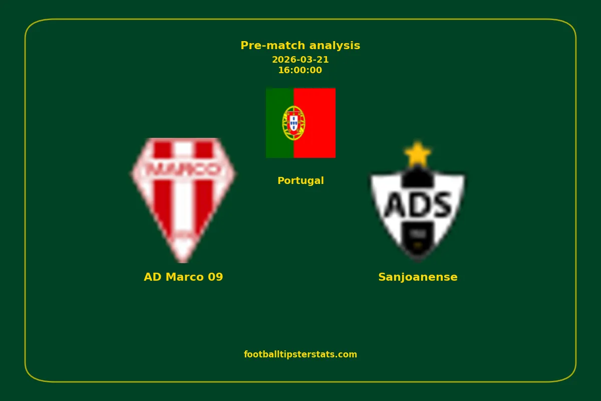 Analyzing the recent performance of AD Marco 09 and Sanjoanense in Portugal, we can derive insights that may inform future match predictions. By examining their individual game histories, head-to-head encounters, and overall trends, we can identify patterns that highlight strengths and weaknesses for both teams. This comprehensive review aims to provide a clearer understanding of their competitive dynamics and potential outcomes in upcoming fixtures.This pre-match analysis covers the upcoming fixture between AD Marco 09 and Sanjoanense. Below you’ll find a detailed breakdown of both teams’ recent form, goal statistics, and head-to-head performance. These insights provide a clear picture of current momentum and can be valuable for match forecasting, tactical evaluation, or betting analysis. Please note that these suggestions are based on historical data and trends. While they provide valuable insights, actual match outcomes can be influenced by various unpredictable factors. Always consider multiple aspects before making any decisions based on these analyses.