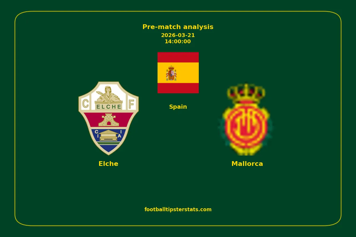 Analyzing the recent performance of Elche and Mallorca in Spain, we can derive insights that may inform future match predictions. By examining their individual game histories, head-to-head encounters, and overall trends, we can identify patterns that highlight strengths and weaknesses for both teams. This comprehensive review aims to provide a clearer understanding of their competitive dynamics and potential outcomes in upcoming fixtures.This pre-match analysis covers the upcoming fixture between Elche and Mallorca. Below you’ll find a detailed breakdown of both teams’ recent form, goal statistics, and head-to-head performance. These insights provide a clear picture of current momentum and can be valuable for match forecasting, tactical evaluation, or betting analysis. Please note that these suggestions are based on historical data and trends. While they provide valuable insights, actual match outcomes can be influenced by various unpredictable factors. Always consider multiple aspects before making any decisions based on these analyses.