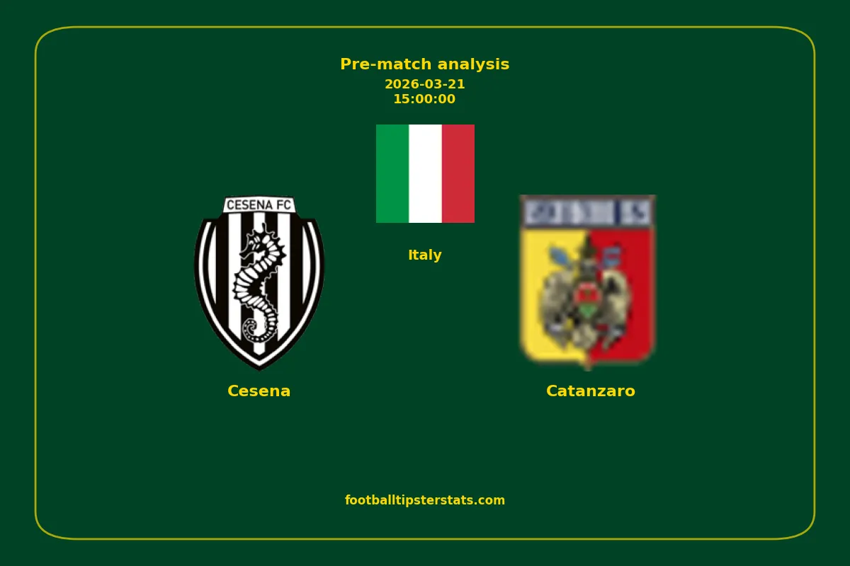 Analyzing the recent performance of Cesena and Catanzaro in Italy, we can derive insights that may inform future match predictions. By examining their individual game histories, head-to-head encounters, and overall trends, we can identify patterns that highlight strengths and weaknesses for both teams. This comprehensive review aims to provide a clearer understanding of their competitive dynamics and potential outcomes in upcoming fixtures.This pre-match analysis covers the upcoming fixture between Cesena and Catanzaro. Below you’ll find a detailed breakdown of both teams’ recent form, goal statistics, and head-to-head performance. These insights provide a clear picture of current momentum and can be valuable for match forecasting, tactical evaluation, or betting analysis. Please note that these suggestions are based on historical data and trends. While they provide valuable insights, actual match outcomes can be influenced by various unpredictable factors. Always consider multiple aspects before making any decisions based on these analyses.