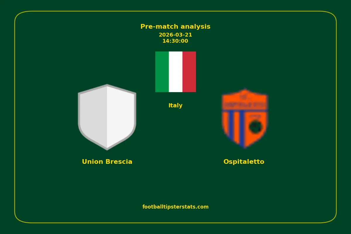 Analyzing the recent performance of Union Brescia and Ospitaletto in Italy, we can derive insights that may inform future match predictions. By examining their individual game histories, head-to-head encounters, and overall trends, we can identify patterns that highlight strengths and weaknesses for both teams. This comprehensive review aims to provide a clearer understanding of their competitive dynamics and potential outcomes in upcoming fixtures.This pre-match analysis covers the upcoming fixture between Union Brescia and Ospitaletto. Below you’ll find a detailed breakdown of both teams’ recent form, goal statistics, and head-to-head performance. These insights provide a clear picture of current momentum and can be valuable for match forecasting, tactical evaluation, or betting analysis. Please note that these suggestions are based on historical data and trends. While they provide valuable insights, actual match outcomes can be influenced by various unpredictable factors. Always consider multiple aspects before making any decisions based on these analyses.
