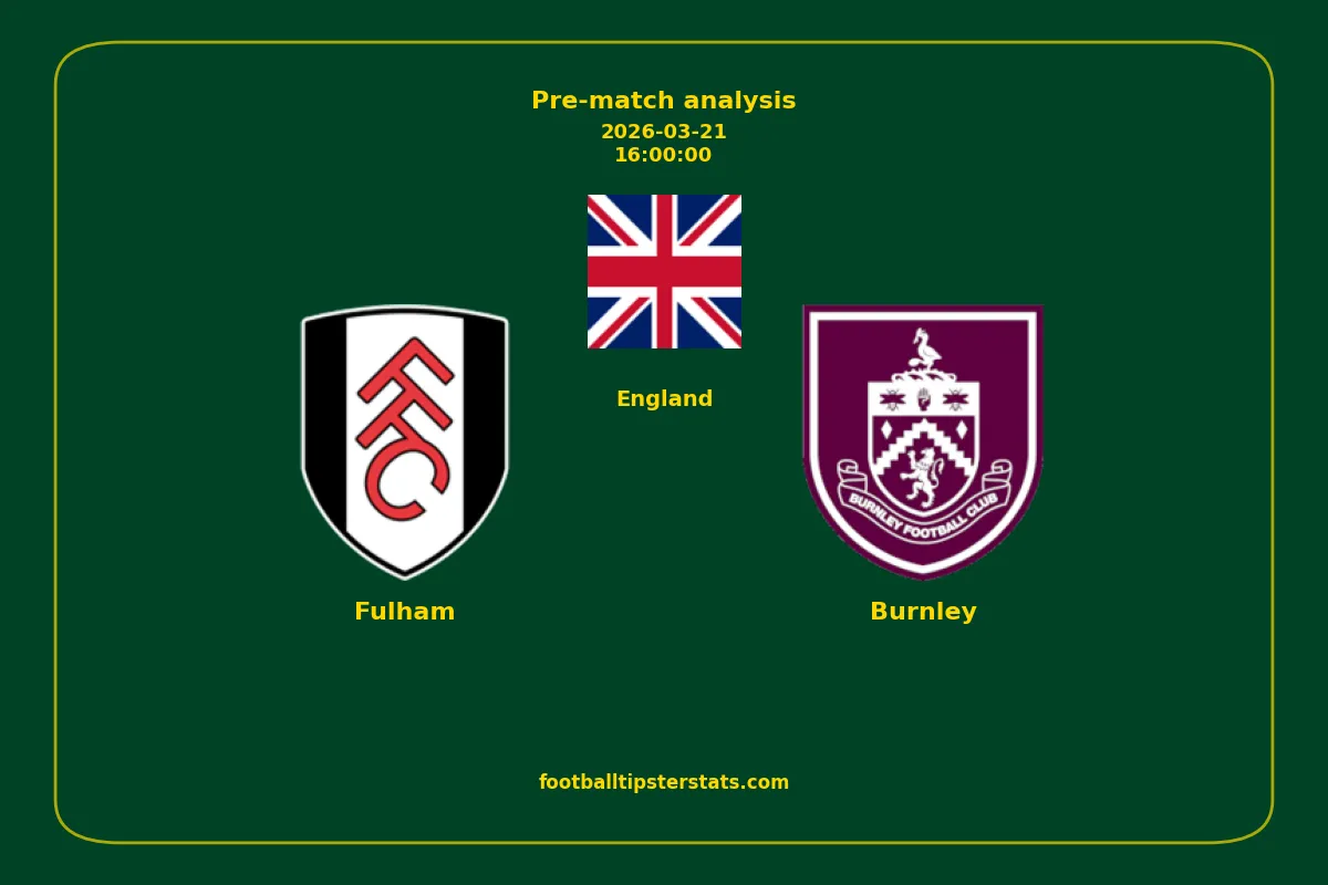 Analyzing the recent performance of Fulham and Burnley in England, we can derive insights that may inform future match predictions. By examining their individual game histories, head-to-head encounters, and overall trends, we can identify patterns that highlight strengths and weaknesses for both teams. This comprehensive review aims to provide a clearer understanding of their competitive dynamics and potential outcomes in upcoming fixtures.This pre-match analysis covers the upcoming fixture between Fulham and Burnley. Below you’ll find a detailed breakdown of both teams’ recent form, goal statistics, and head-to-head performance. These insights provide a clear picture of current momentum and can be valuable for match forecasting, tactical evaluation, or betting analysis. Please note that these suggestions are based on historical data and trends. While they provide valuable insights, actual match outcomes can be influenced by various unpredictable factors. Always consider multiple aspects before making any decisions based on these analyses.