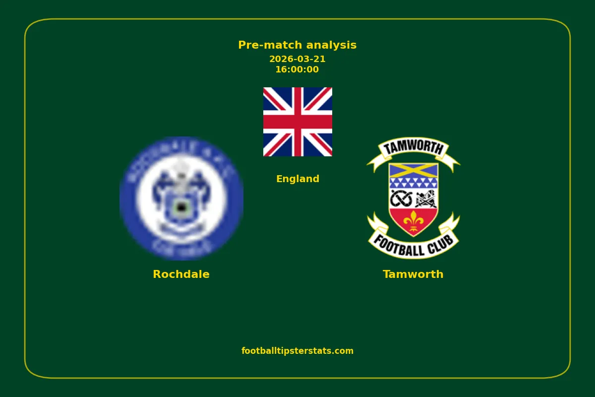 Analyzing the recent performance of Rochdale and Tamworth in England, we can derive insights that may inform future match predictions. By examining their individual game histories, head-to-head encounters, and overall trends, we can identify patterns that highlight strengths and weaknesses for both teams. This comprehensive review aims to provide a clearer understanding of their competitive dynamics and potential outcomes in upcoming fixtures.This pre-match analysis covers the upcoming fixture between Rochdale and Tamworth. Below you’ll find a detailed breakdown of both teams’ recent form, goal statistics, and head-to-head performance. These insights provide a clear picture of current momentum and can be valuable for match forecasting, tactical evaluation, or betting analysis. Please note that these suggestions are based on historical data and trends. While they provide valuable insights, actual match outcomes can be influenced by various unpredictable factors. Always consider multiple aspects before making any decisions based on these analyses.