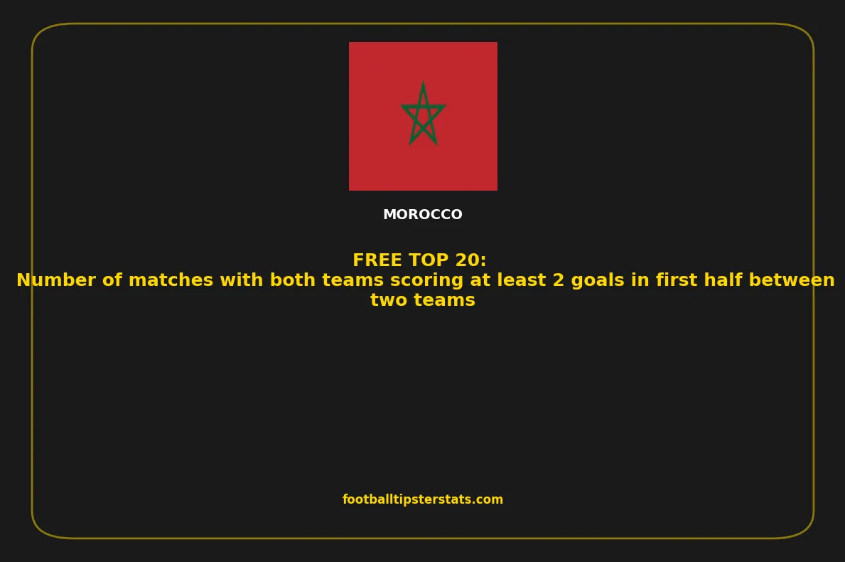 Here is a detailed overview of the teams with the highest number of matches with both teams scoring at least 2 goals in first half between two teams in Morocco. This list highlights clubs that consistently produce high-scoring games, based on recent statistical performance. Whether you're analyzing trends, preparing betting strategies, or simply exploring offensive team profiles, these numbers offer a clear insight into which teams generate the most goal-rich matches.