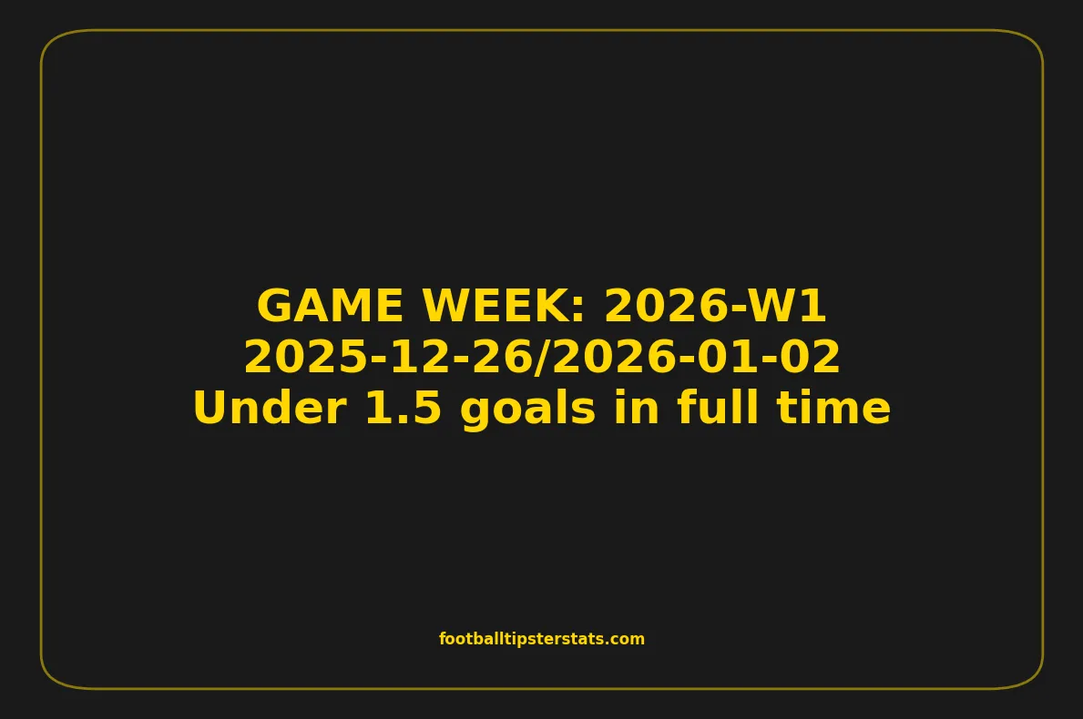 This game week analysis covers fixtures from GAME WEEK 1, January 26-02, 2026, with a strong statistical focus on Under 1.5 goals in full time.