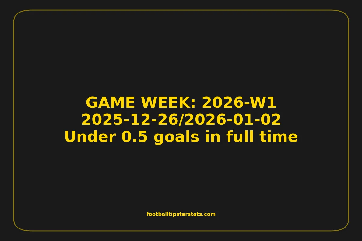 This game week analysis covers fixtures from GAME WEEK 1, January 26-02, 2026, with a strong statistical focus on Under 0.5 goals in full time.