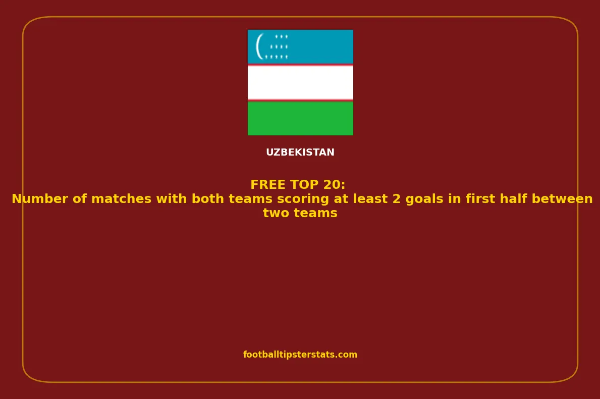 Here is a detailed overview of the teams with the highest number of matches with both teams scoring at least 2 goals in first half between two teams in Uzbekistan. This list highlights clubs that consistently produce high-scoring games, based on recent statistical performance. Whether you're analyzing trends, preparing betting strategies, or simply exploring offensive team profiles, these numbers offer a clear insight into which teams generate the most goal-rich matches.