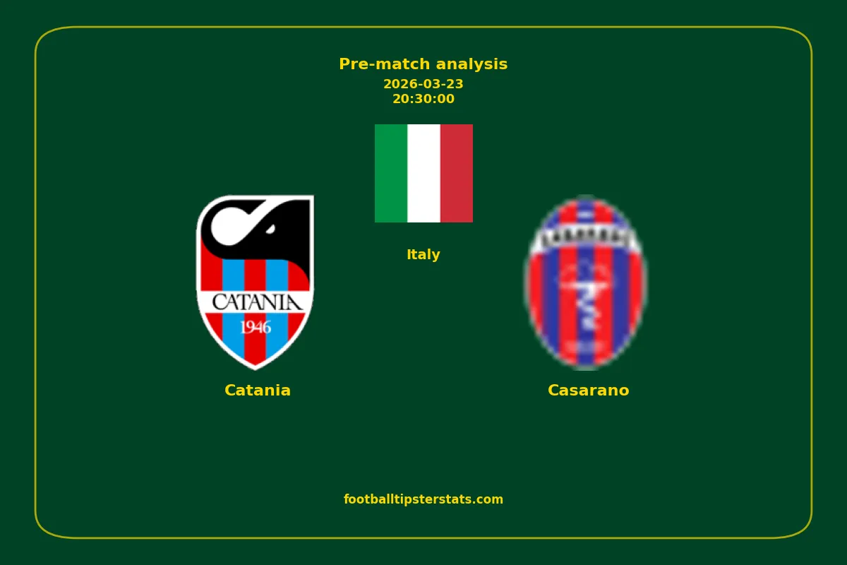 Analyzing the recent performance of Catania and Casarano in Italy, we can derive insights that may inform future match predictions. By examining their individual game histories, head-to-head encounters, and overall trends, we can identify patterns that highlight strengths and weaknesses for both teams. This comprehensive review aims to provide a clearer understanding of their competitive dynamics and potential outcomes in upcoming fixtures.This pre-match analysis covers the upcoming fixture between Catania and Casarano. Below you’ll find a detailed breakdown of both teams’ recent form, goal statistics, and head-to-head performance. These insights provide a clear picture of current momentum and can be valuable for match forecasting, tactical evaluation, or betting analysis. Please note that these suggestions are based on historical data and trends. While they provide valuable insights, actual match outcomes can be influenced by various unpredictable factors. Always consider multiple aspects before making any decisions based on these analyses.