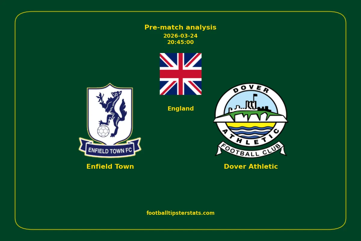 Analyzing the recent performance of Enfield Town and Dover Athletic in England, we can derive insights that may inform future match predictions. By examining their individual game histories, head-to-head encounters, and overall trends, we can identify patterns that highlight strengths and weaknesses for both teams. This comprehensive review aims to provide a clearer understanding of their competitive dynamics and potential outcomes in upcoming fixtures.This pre-match analysis covers the upcoming fixture between Enfield Town and Dover Athletic. Below you’ll find a detailed breakdown of both teams’ recent form, goal statistics, and head-to-head performance. These insights provide a clear picture of current momentum and can be valuable for match forecasting, tactical evaluation, or betting analysis. Please note that these suggestions are based on historical data and trends. While they provide valuable insights, actual match outcomes can be influenced by various unpredictable factors. Always consider multiple aspects before making any decisions based on these analyses.