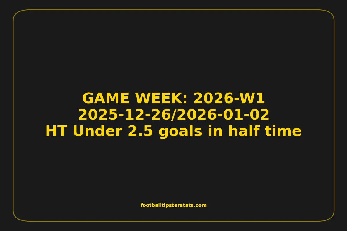 This game week analysis covers fixtures from GAME WEEK 1, January 26-02, 2026, with a strong statistical focus on HT Under 2.5 goals in half time.