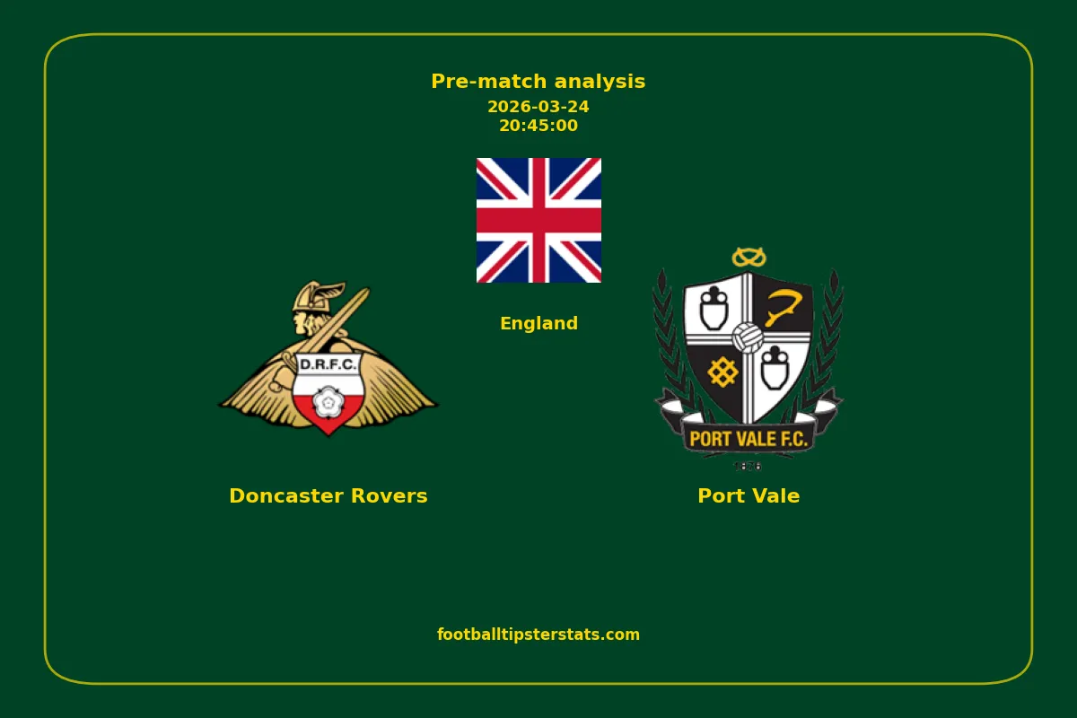 Analyzing the recent performance of Doncaster Rovers and Port Vale in England, we can derive insights that may inform future match predictions. By examining their individual game histories, head-to-head encounters, and overall trends, we can identify patterns that highlight strengths and weaknesses for both teams. This comprehensive review aims to provide a clearer understanding of their competitive dynamics and potential outcomes in upcoming fixtures.This pre-match analysis covers the upcoming fixture between Doncaster Rovers and Port Vale. Below you’ll find a detailed breakdown of both teams’ recent form, goal statistics, and head-to-head performance. These insights provide a clear picture of current momentum and can be valuable for match forecasting, tactical evaluation, or betting analysis. Please note that these suggestions are based on historical data and trends. While they provide valuable insights, actual match outcomes can be influenced by various unpredictable factors. Always consider multiple aspects before making any decisions based on these analyses.