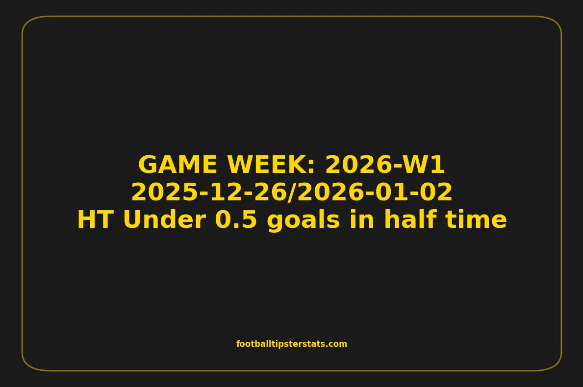 This game week analysis covers fixtures from GAME WEEK 1, January 26-02, 2026, with a strong statistical focus on HT Under 0.5 goals in half time.