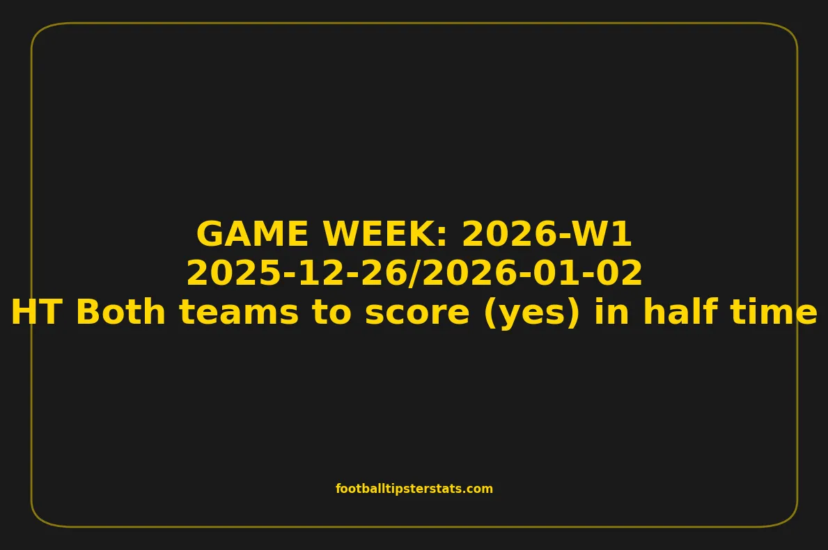 This game week analysis covers fixtures from GAME WEEK 1, January 26-02, 2026, with a strong statistical focus on HT Both teams to score (yes) in half time.