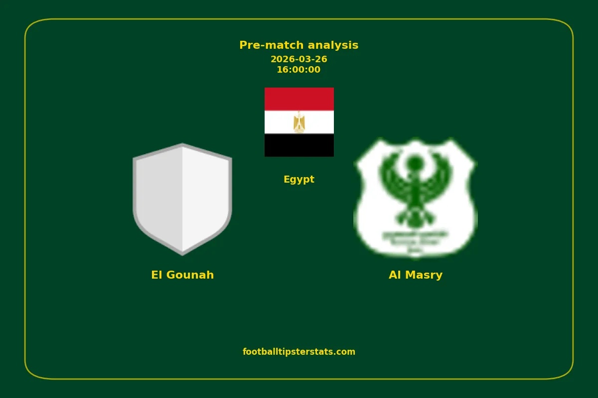 Analyzing the recent performance of El Gounah and Al Masry in Egypt, we can derive insights that may inform future match predictions. By examining their individual game histories, head-to-head encounters, and overall trends, we can identify patterns that highlight strengths and weaknesses for both teams. This comprehensive review aims to provide a clearer understanding of their competitive dynamics and potential outcomes in upcoming fixtures.This pre-match analysis covers the upcoming fixture between El Gounah and Al Masry. Below you’ll find a detailed breakdown of both teams’ recent form, goal statistics, and head-to-head performance. These insights provide a clear picture of current momentum and can be valuable for match forecasting, tactical evaluation, or betting analysis. Please note that these suggestions are based on historical data and trends. While they provide valuable insights, actual match outcomes can be influenced by various unpredictable factors. Always consider multiple aspects before making any decisions based on these analyses.