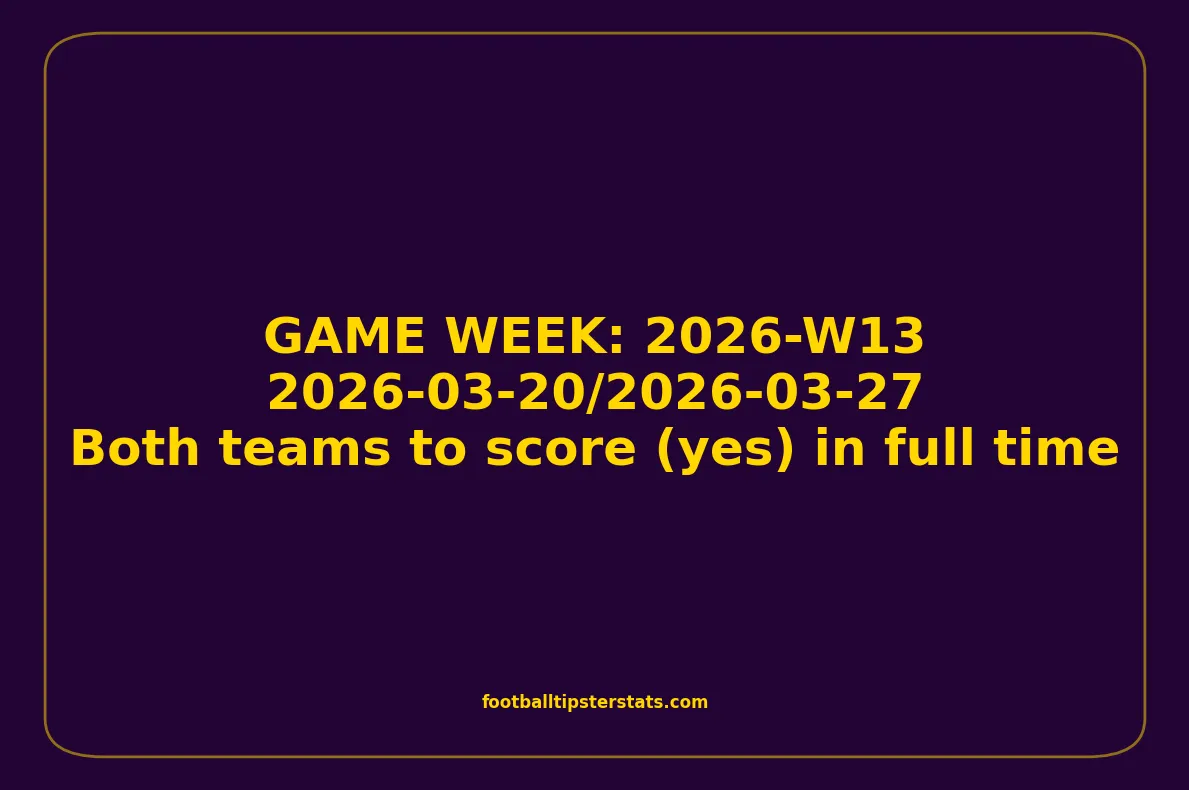 This game week analysis covers fixtures from GAME WEEK 13, March 20-27, 2026, with a strong statistical focus on Both teams to score (yes) in full time.