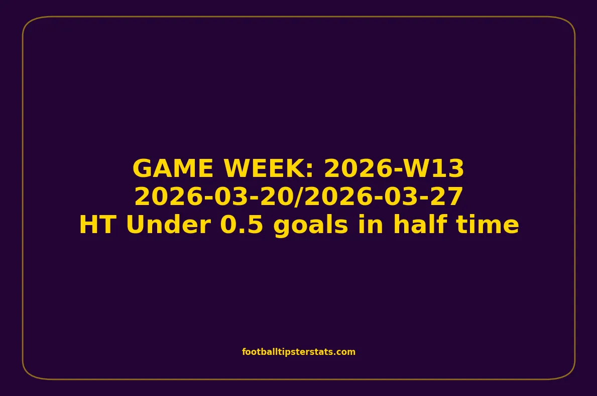 This game week analysis covers fixtures from GAME WEEK 13, March 20-27, 2026, with a strong statistical focus on HT Under 0.5 goals in half time.