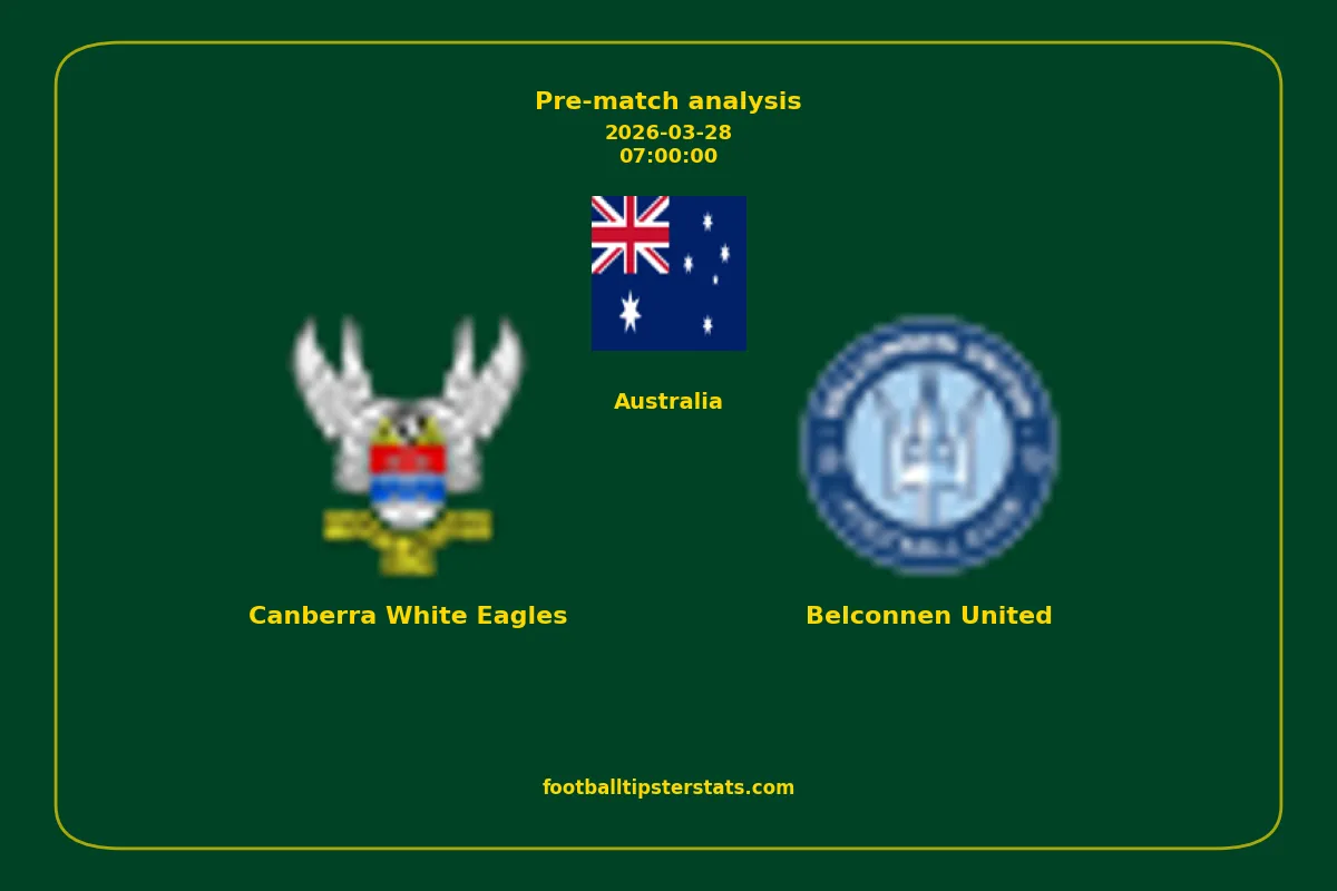 Analyzing the recent performance of Canberra White Eagles and Belconnen United in Australia, we can derive insights that may inform future match predictions. By examining their individual game histories, head-to-head encounters, and overall trends, we can identify patterns that highlight strengths and weaknesses for both teams. This comprehensive review aims to provide a clearer understanding of their competitive dynamics and potential outcomes in upcoming fixtures.This pre-match analysis covers the upcoming fixture between Canberra White Eagles and Belconnen United. Below you’ll find a detailed breakdown of both teams’ recent form, goal statistics, and head-to-head performance. These insights provide a clear picture of current momentum and can be valuable for match forecasting, tactical evaluation, or betting analysis. Please note that these suggestions are based on historical data and trends. While they provide valuable insights, actual match outcomes can be influenced by various unpredictable factors. Always consider multiple aspects before making any decisions based on these analyses.