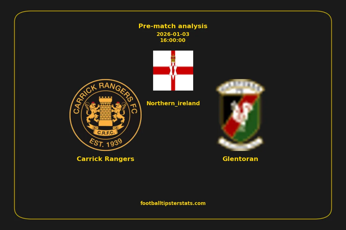 Analyzing the recent performance of Carrick Rangers and Glentoran in Northern_ireland, we can derive insights that may inform future match predictions. By examining their individual game histories, head-to-head encounters, and overall trends, we can identify patterns that highlight strengths and weaknesses for both teams. This comprehensive review aims to provide a clearer understanding of their competitive dynamics and potential outcomes in upcoming fixtures.This pre-match analysis covers the upcoming fixture between Carrick Rangers and Glentoran. Below you’ll find a detailed breakdown of both teams’ recent form, goal statistics, and head-to-head performance. These insights provide a clear picture of current momentum and can be valuable for match forecasting, tactical evaluation, or betting analysis. Please note that these suggestions are based on historical data and trends. While they provide valuable insights, actual match outcomes can be influenced by various unpredictable factors. Always consider multiple aspects before making any decisions based on these analyses.