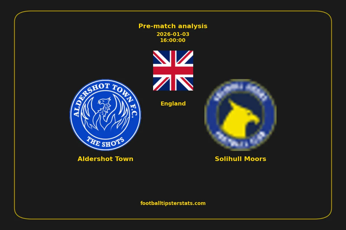 Analyzing the recent performance of Aldershot Town and Solihull Moors in England, we can derive insights that may inform future match predictions. By examining their individual game histories, head-to-head encounters, and overall trends, we can identify patterns that highlight strengths and weaknesses for both teams. This comprehensive review aims to provide a clearer understanding of their competitive dynamics and potential outcomes in upcoming fixtures.This pre-match analysis covers the upcoming fixture between Aldershot Town and Solihull Moors. Below you’ll find a detailed breakdown of both teams’ recent form, goal statistics, and head-to-head performance. These insights provide a clear picture of current momentum and can be valuable for match forecasting, tactical evaluation, or betting analysis. Please note that these suggestions are based on historical data and trends. While they provide valuable insights, actual match outcomes can be influenced by various unpredictable factors. Always consider multiple aspects before making any decisions based on these analyses.