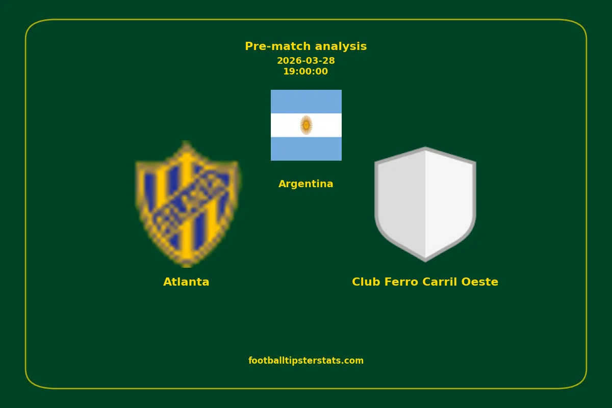 Analyzing the recent performance of Atlanta and Club Ferro Carril Oeste in Argentina, we can derive insights that may inform future match predictions. By examining their individual game histories, head-to-head encounters, and overall trends, we can identify patterns that highlight strengths and weaknesses for both teams. This comprehensive review aims to provide a clearer understanding of their competitive dynamics and potential outcomes in upcoming fixtures.This pre-match analysis covers the upcoming fixture between Atlanta and Club Ferro Carril Oeste. Below you’ll find a detailed breakdown of both teams’ recent form, goal statistics, and head-to-head performance. These insights provide a clear picture of current momentum and can be valuable for match forecasting, tactical evaluation, or betting analysis. Please note that these suggestions are based on historical data and trends. While they provide valuable insights, actual match outcomes can be influenced by various unpredictable factors. Always consider multiple aspects before making any decisions based on these analyses.