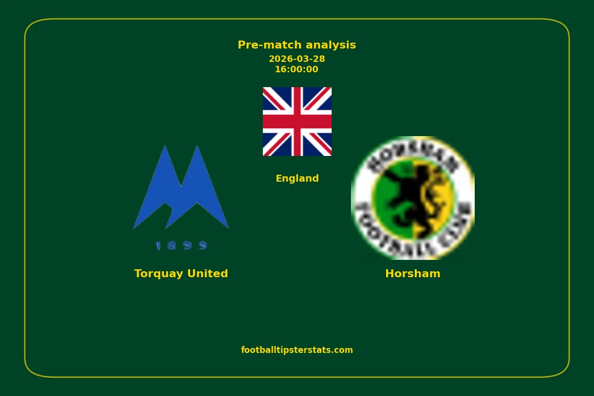 Analyzing the recent performance of Torquay United and Horsham in England, we can derive insights that may inform future match predictions. By examining their individual game histories, head-to-head encounters, and overall trends, we can identify patterns that highlight strengths and weaknesses for both teams. This comprehensive review aims to provide a clearer understanding of their competitive dynamics and potential outcomes in upcoming fixtures.This pre-match analysis covers the upcoming fixture between Torquay United and Horsham. Below you’ll find a detailed breakdown of both teams’ recent form, goal statistics, and head-to-head performance. These insights provide a clear picture of current momentum and can be valuable for match forecasting, tactical evaluation, or betting analysis. Please note that these suggestions are based on historical data and trends. While they provide valuable insights, actual match outcomes can be influenced by various unpredictable factors. Always consider multiple aspects before making any decisions based on these analyses.